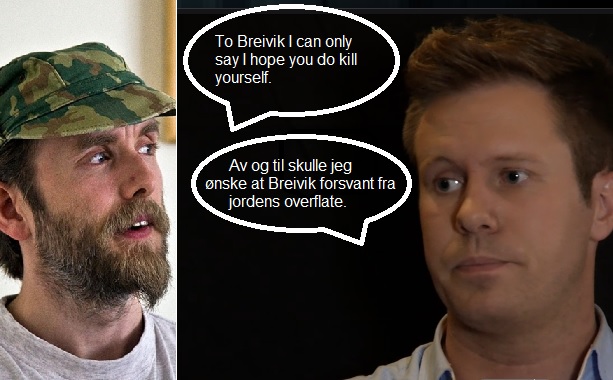 AUF leder Eskil Pedersen støtter seg også til Varg Vikernes syn på Anders Breivik. I et intervju med VG sier han bla. at han hater Breivik og at han av og til ønsker at Breivik forsvant fra jordens overflate. Se intervjuet Her.